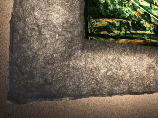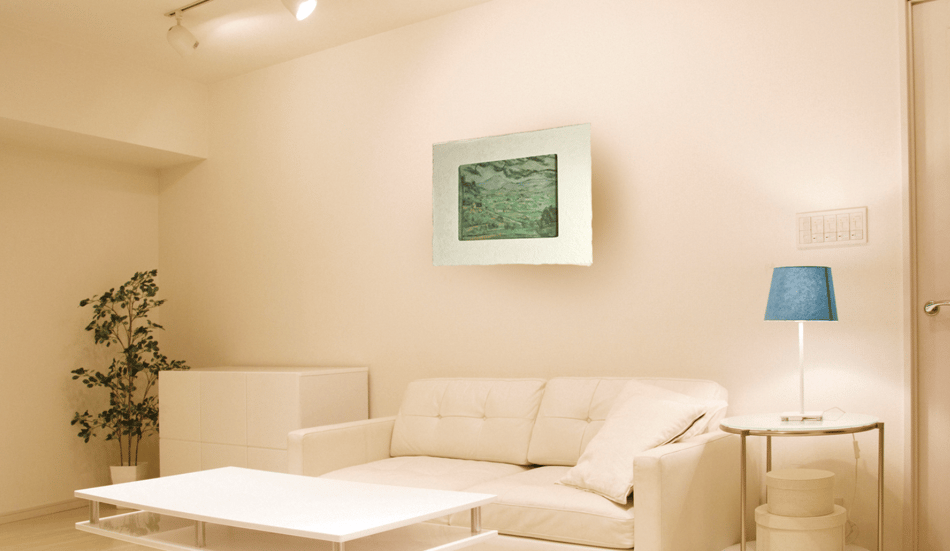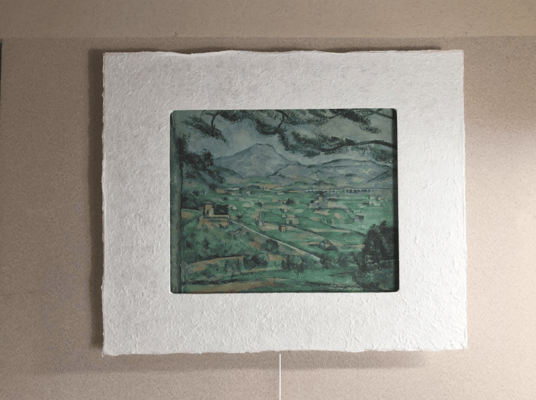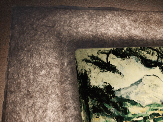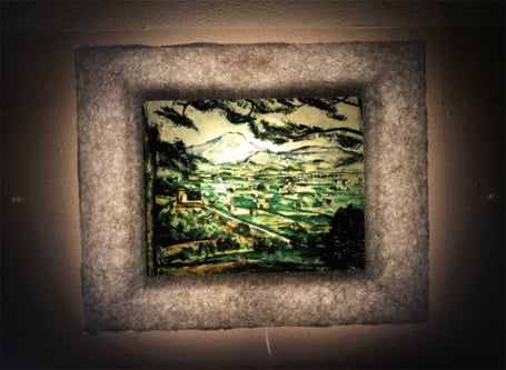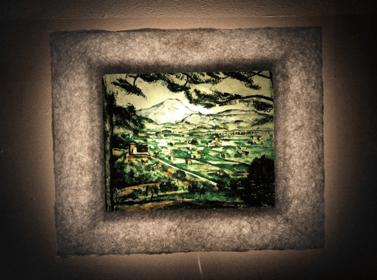 LEDで浮かび上がったセザンヌ作品は、手漉き和紙の癒し効果で幻想的な和紙アートの世界に誘います