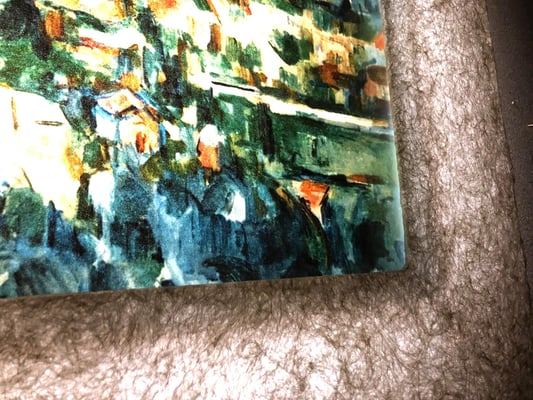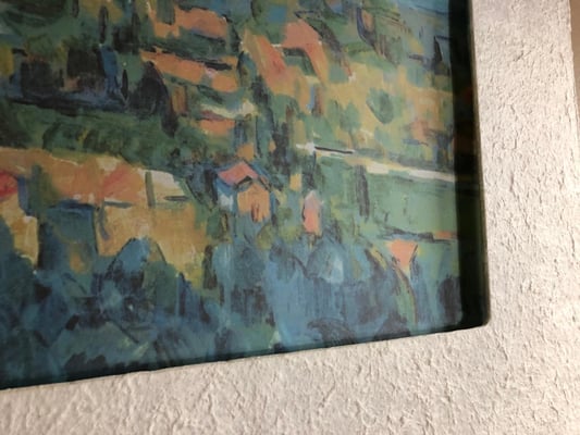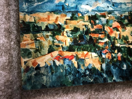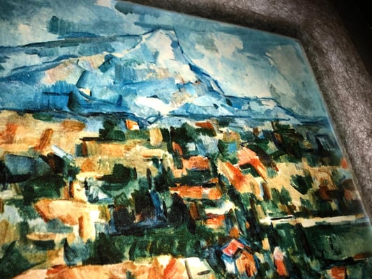 セザンヌは近代絵画の父と呼ばれ、20世紀絵画の扉を開いた後期印象派を代表する画家。伝統的な絵画の約束事にとらわれない独自の絵画様式を探求し、キュビスムにおける芸術概念の基礎となりました。「セントビクトワール山」では景色を四角形や三角形にデフォルメし柔らかい配色で仕上げています。
