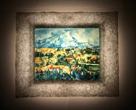 LEDで浮かび上がったセザンヌ作品は、手漉き和紙の癒し効果で幻想的な和紙アートの世界に誘います