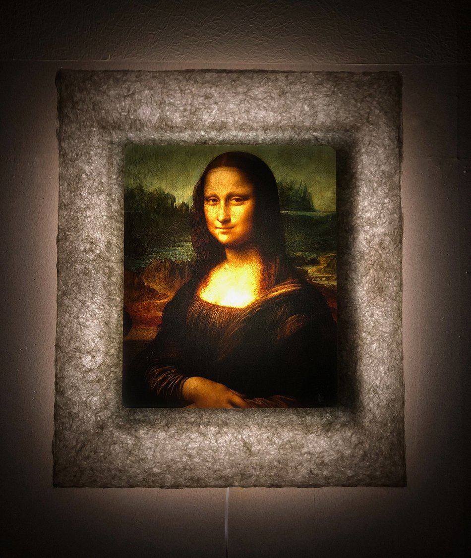 LEDで浮かび上がったダ・ヴィンチ作品は、手漉き和紙の癒し効果で幻想的な和紙アートの世界に誘います