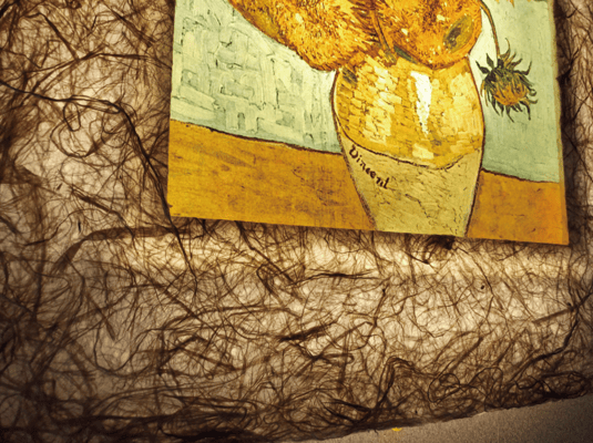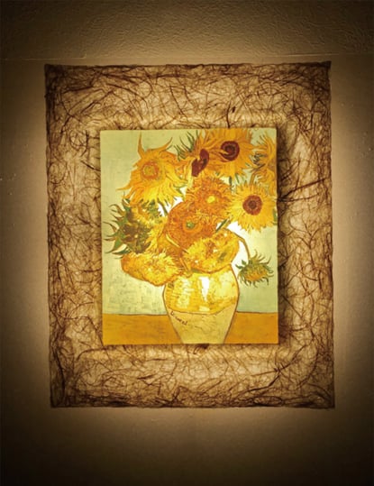 LEDで浮かび上がったゴッホ作品は、手漉き和紙の癒し効果で幻想的な和紙アートの世界に誘います