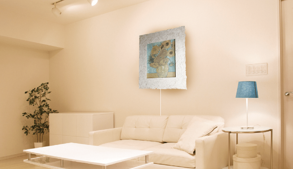 通常の複製画と違い、和紙に名画を印刷して、和紙額縁の灯りの中で輝かせます。