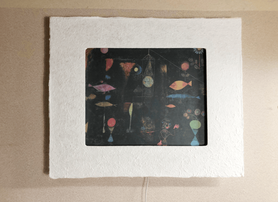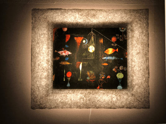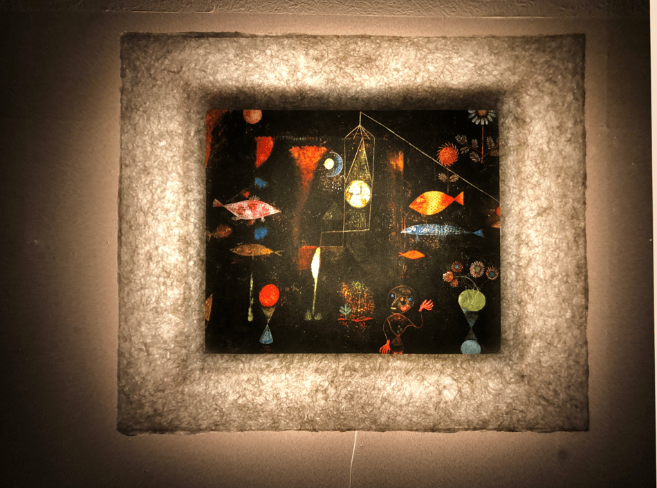 クレーは表現主義、キュビスム、シュルレアリスムなど当時の前衛芸術運動のさまざまなスタイルから影響を受けた個性的なスタイルが特徴。 子どものような無垢さ、ユーモラスさ、と音楽性が絵画作品に反映されている。 クレーは、魚のモチーフを好み、ファンタジックな世界を多く描いています。