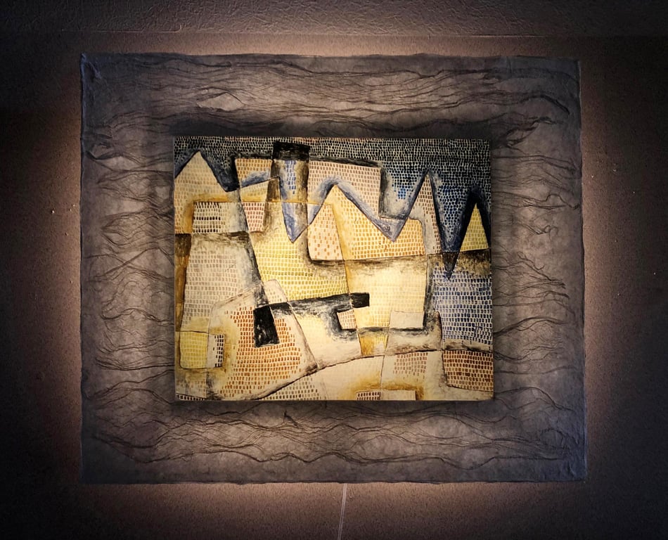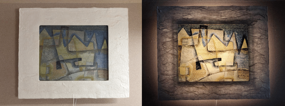 額装は越前手漉き和紙。作品も和紙に印刷しています。和紙に印刷することで独自の灯りアートが楽しめます。