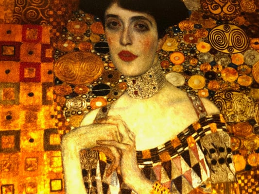 クリムトは19世紀末ウィーンを代表する画家。自然主義的な作品から、分離派結成後の黄金様式の時代から、甘美な女性像や数多く手がけた風景画までと幅広い作品をのこしている。この作品は「黄金時代」後期で最も完成度の高い作品といわれています。金の装飾と色彩が重なり合いゴージャス感があり、それと対比して人間味があるモデルの顔とのバランス感が作品に深みを感じます。