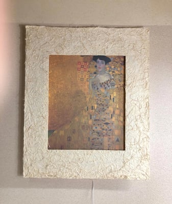LEDで浮かび上がったクリムト作品は、手漉き和紙の癒し効果で幻想的な和紙アートの世界に誘います