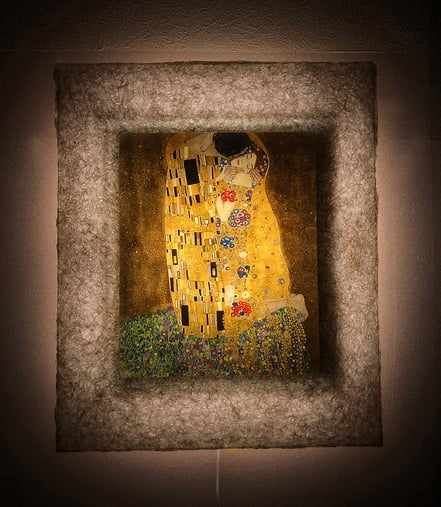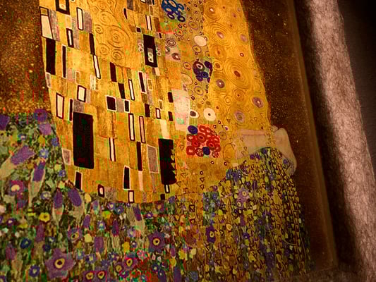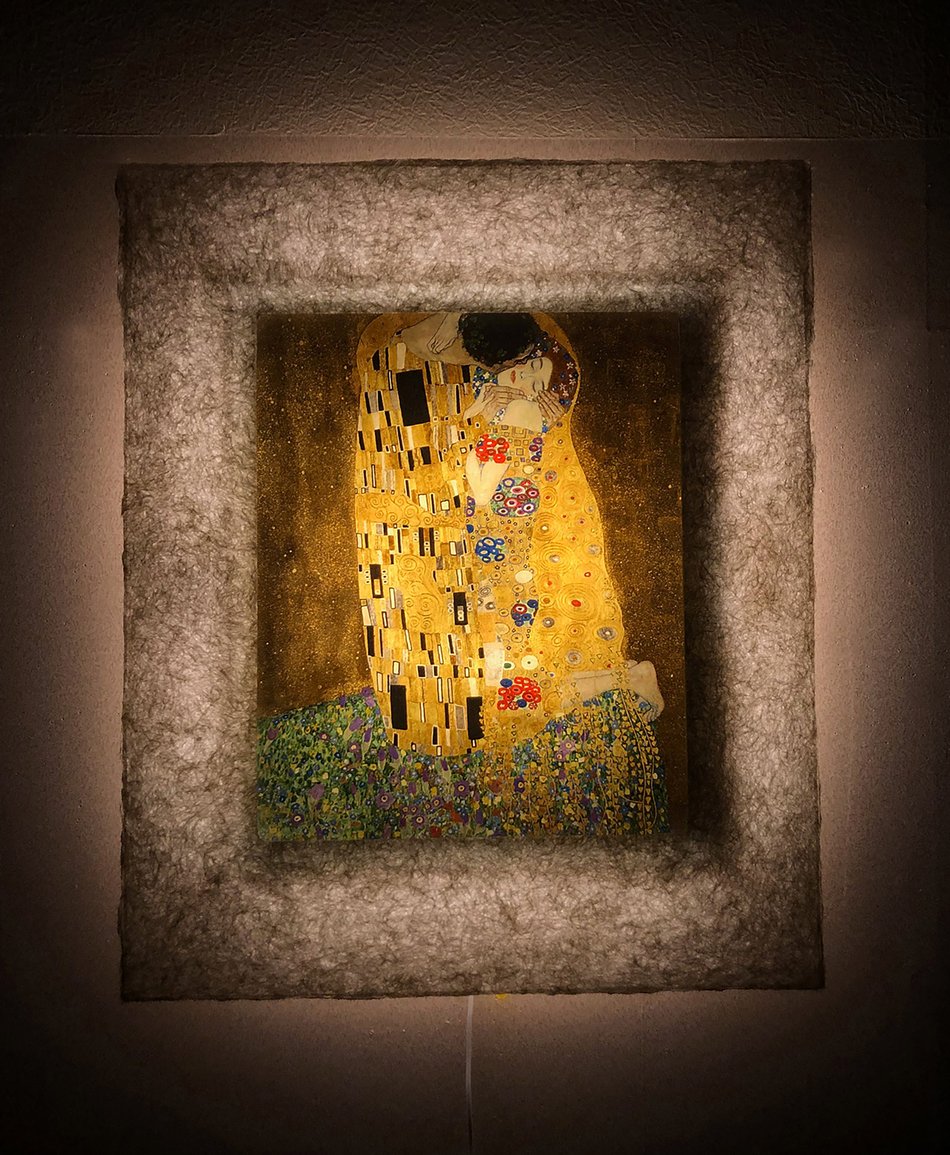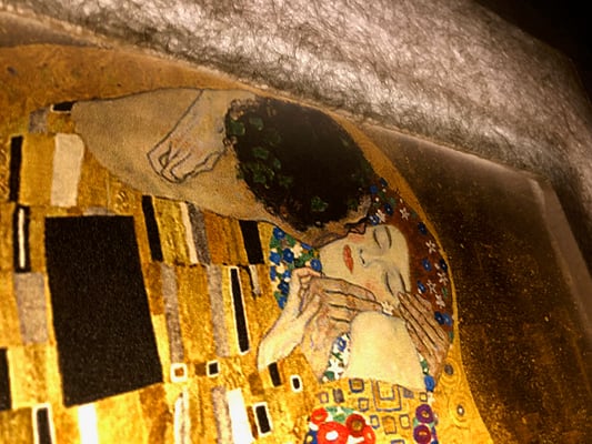 クリムトは19世紀末ウィーンを代表する画家。自然主義的な作品から、分離派結成後の黄金様式の時代から、甘美な女性像や数多く手がけた風景画までと幅広い作品をのこしている。「接吻」は彼の代表作。二人の身体にはアール・ヌーヴォー画法で描かれ、有機的なフォルムと輪郭線が装飾的で魅惑さを醸し出している。