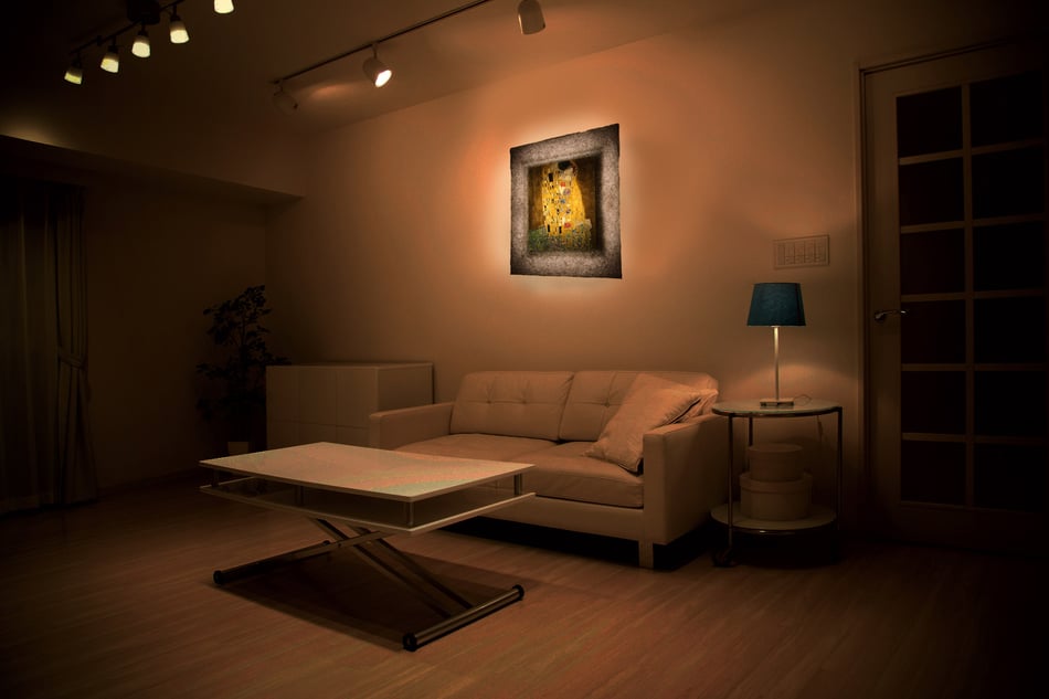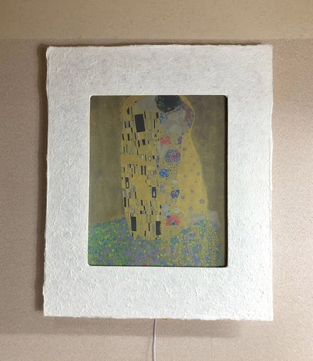 通常の複製画と違い、和紙に名画を印刷して、和紙額縁の灯りの中で輝かせます。