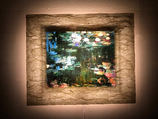 LEDで浮かび上がったモネ作品は、手漉き和紙の癒し効果で幻想的な和紙アートの世界に誘います