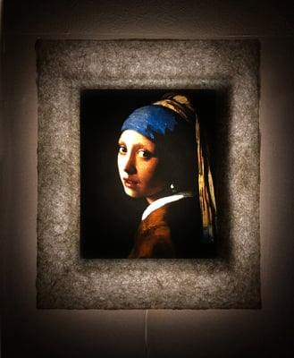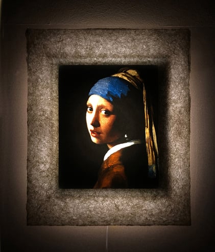 LEDで浮かび上がったフェルメール作品は、手漉き和紙の癒し効果で幻想的な和紙アートの世界に誘います