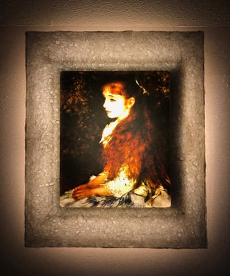 LEDで浮かび上がったルノワール作品は、手漉き和紙の癒し効果で幻想的な和紙アートの世界に誘います