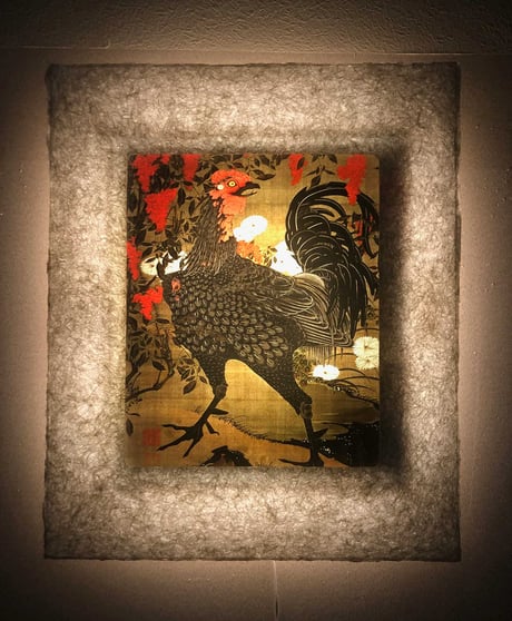 LEDで浮かび上がった伊藤若冲の作品は、手漉き和紙の癒し効果で幻想的な和紙アートの世界に誘います