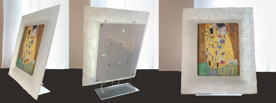 作品も専用和紙に印刷して和紙ックに装入。額装と作品を背面から幻想的に照らします。その灯りは間接照明として空間を包み、癒しのアート世界に誘います。 詳しくはこちら