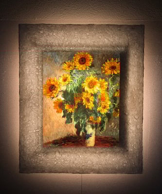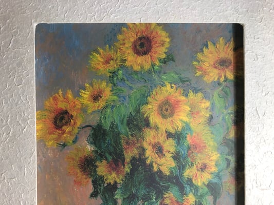 情熱的で野性味あふれるひまわりをこれほど穏やかに描きあげるのは巨匠モネだからこそ。ひまわりのイメージを覆す斬新な作品であり、眺めるごとに心が潤います。