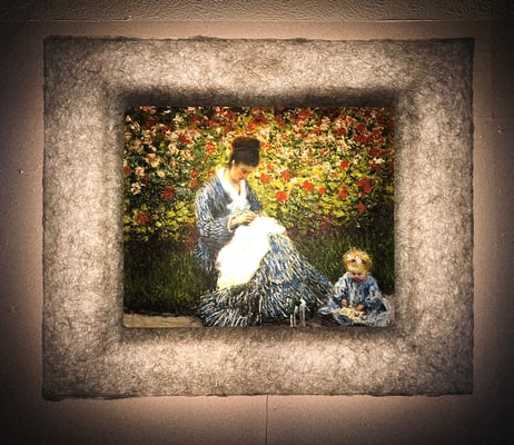 LEDで浮かび上がったモネ作品は、手漉き和紙の癒し効果で幻想的な和紙アートの世界に誘います