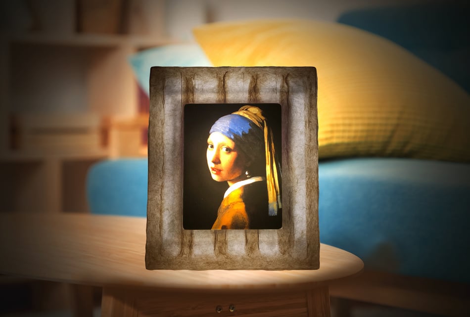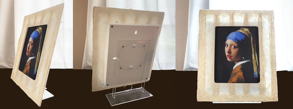 作品も専用和紙に印刷して和紙ックに装入。額装と作品を背面から幻想的に照らします。その灯りは間接照明として空間を包み、癒しのアート世界に誘います。 詳しくはこちら