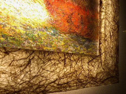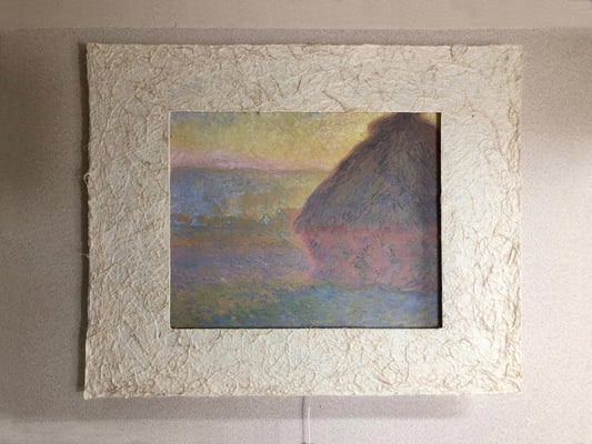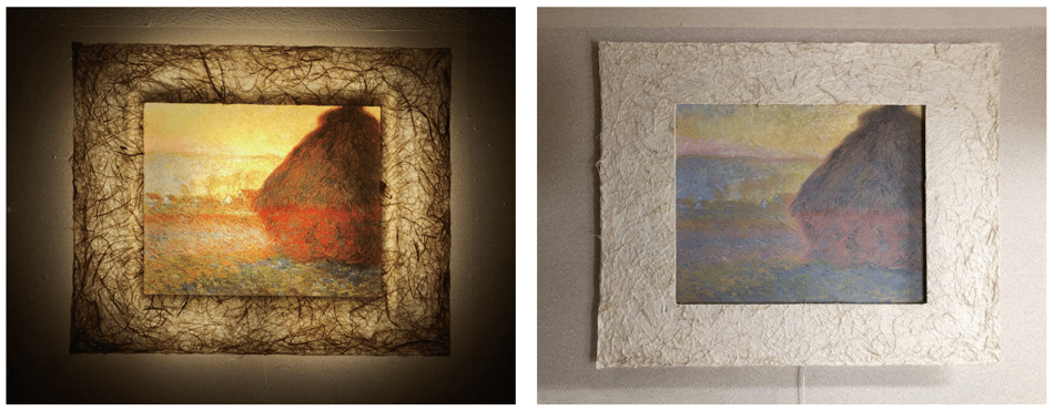 LEDで浮かび上がったモネ作品は、手漉き和紙の癒し効果で幻想的な和紙アートの世界に誘います