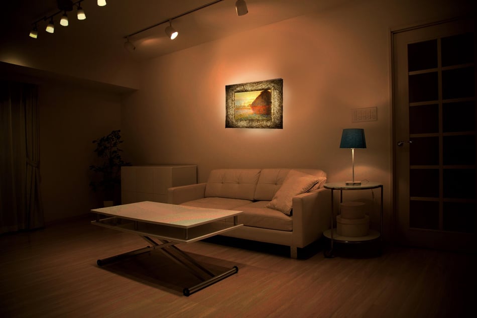通常の複製画と違い、和紙に名画を印刷して、和紙額縁の灯りの中で輝かせます。