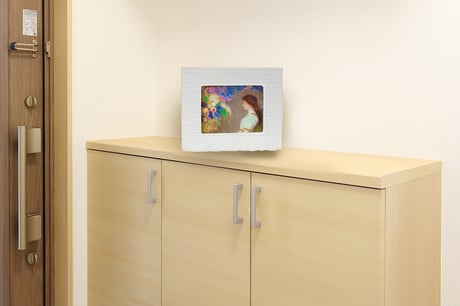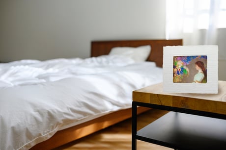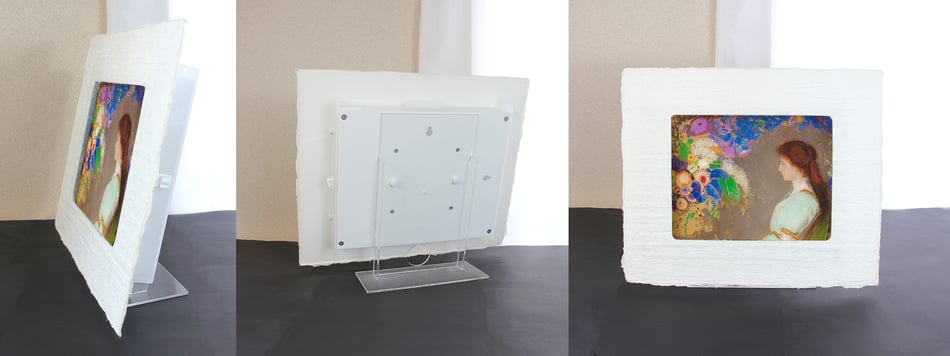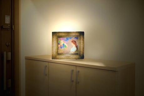作品も専用和紙に印刷して和紙ックに装入。額装と作品を背面から幻想的に照らします。その灯りは間接照明として空間を包み、癒しのアート世界に誘います。 詳しくはこちら